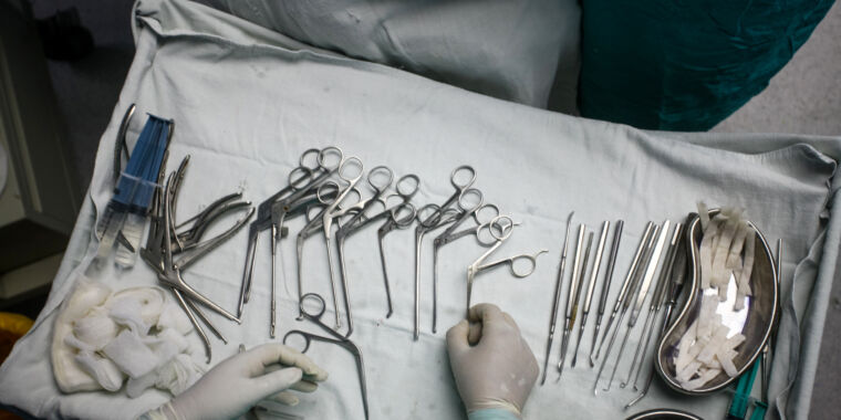 Enlarge / Surgical implements are seen on a tray during a surgery. (credit: Getty | Ritesh Shukla)…Nvidia’s new monster CPU+GPU chip may power the next gen of AI chatbots